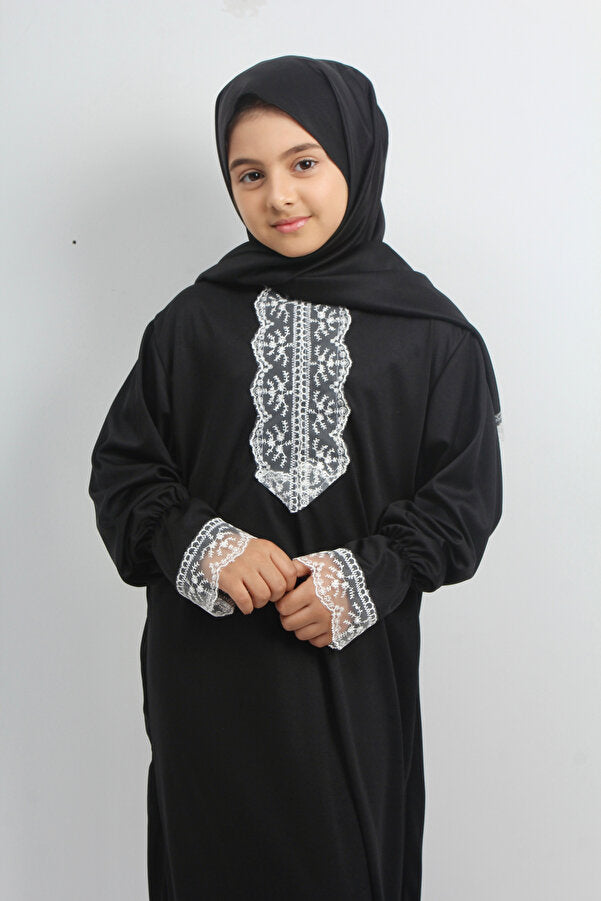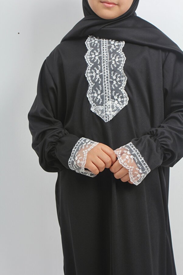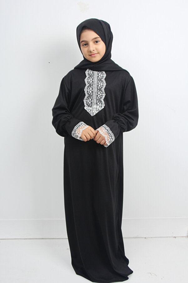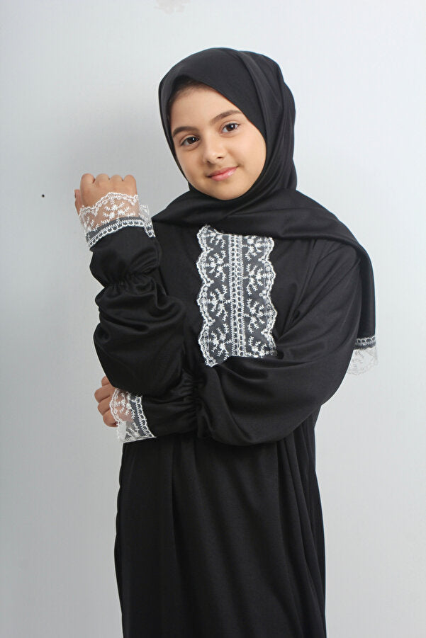 Siyah Dantelli Kız Çocuk Namaz Elbisesi